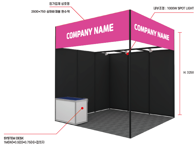 | 기본부스 제공 사양과 동일, 추가전기 필요시 필수 신청